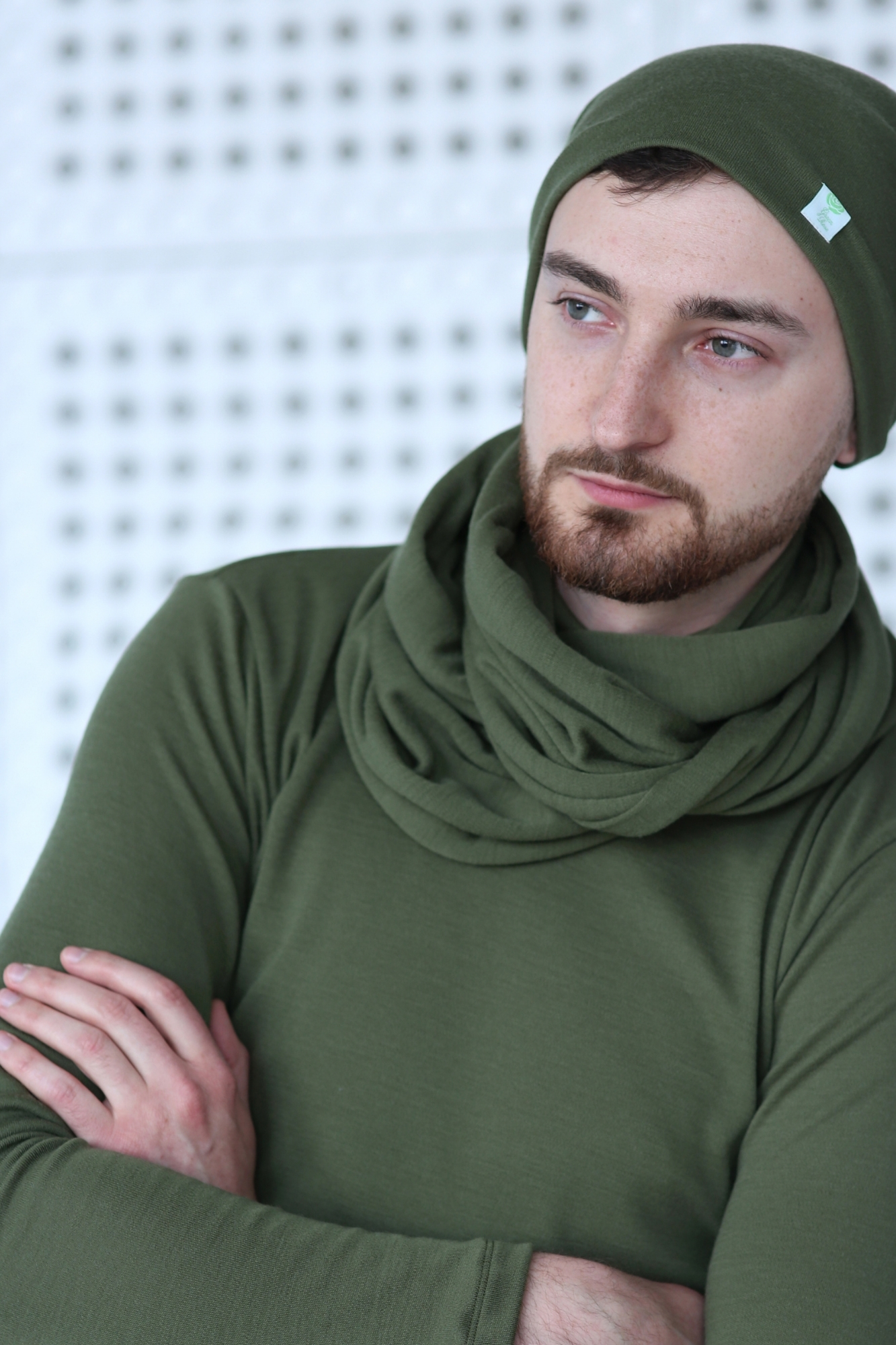 Derinkite su merino šaliku, kaklo mova ar merino pirmu sluoksniu. Jei mėgstate sluoksniuoti, kepurė patogiai telpa po striukės gobtuvu.