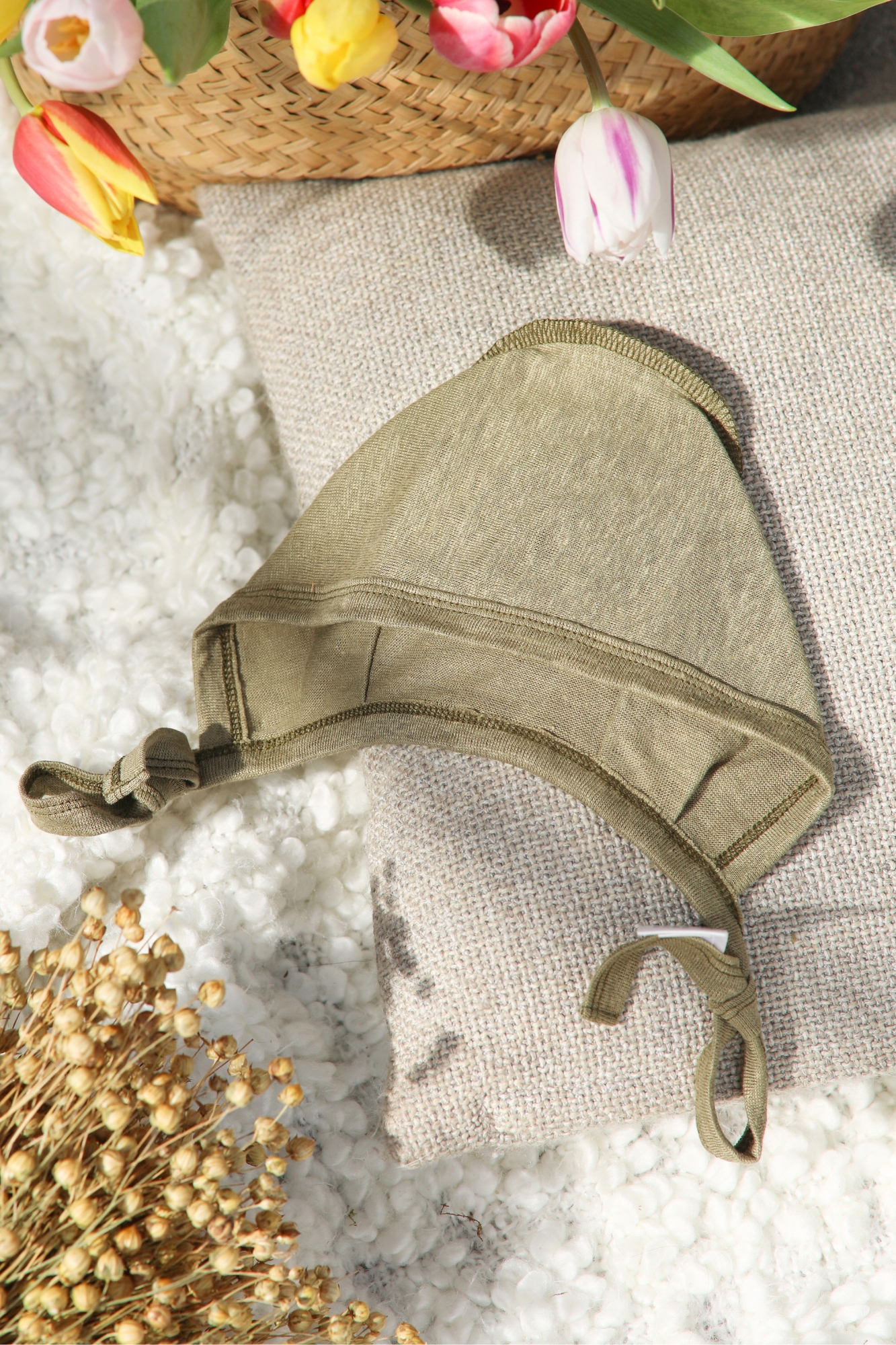 Linas nuo seno vertinamas dėl natūralumo ir lengvumo. Jis sugeria drėgmę, padeda jai greičiau pasišalinti ir leidžia odai jaustis maloniau, kai oras šiltas ar permainingas. Todėl ši lino kepurė naujagimiui tinka ne tik vasarai, bet ir namuose vėsesniu metų laiku, kai norisi lengvo sluoksnio be perkaitimo pojūčio. Tai pasirinkimas tėvams, kurie ieško natūralaus audinio ir nori, kad mažylio garderobe būtų ne atsitiktiniai, o gerai apgalvoti drabužėliai.