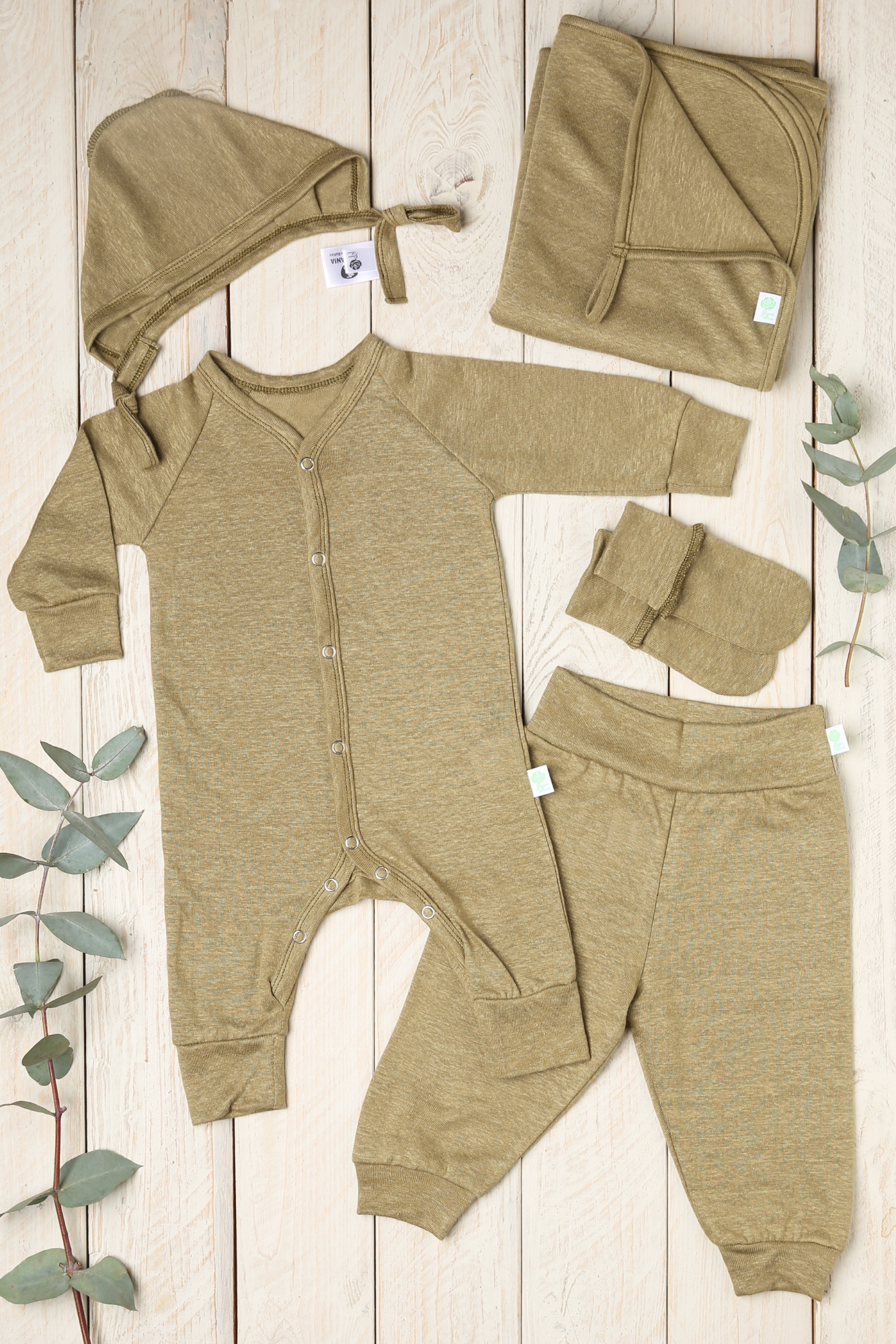 ✔ 100% lino drabužėlių rinkinys naujagimiui;