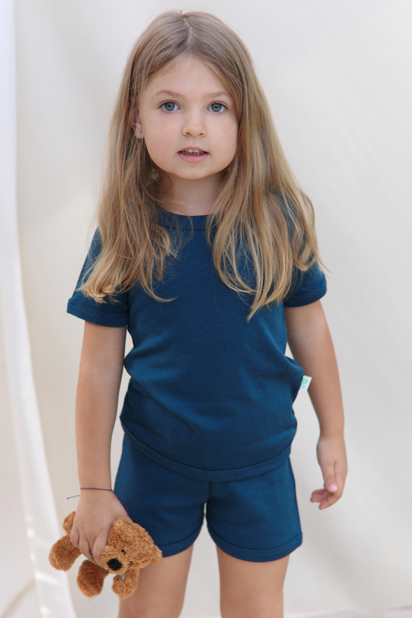 Pižamos su šortukais – tai tas variantas, kai vaikas nori miegoti šiltai, bet jam nepatinka per daug sluoksnių. Dviejų dalių komplektas su trumpomis rankovėmis ir šortukais palieka laisvę judėti, o merino vilna padeda išlaikyti komfortą per visą naktį – merino pluoštas padeda kūnui jaustis šiltai ir jaukiai.
